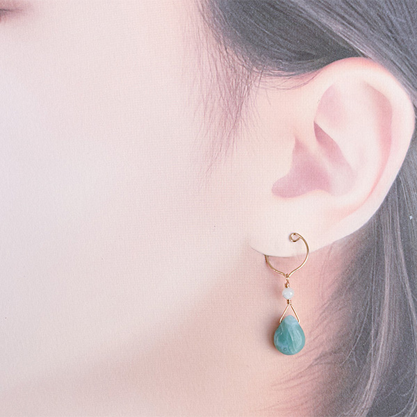 金具部分で耳たぶを挟むシンプルな形で、耳が痛くなりにくいです。