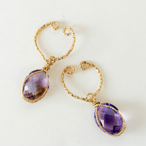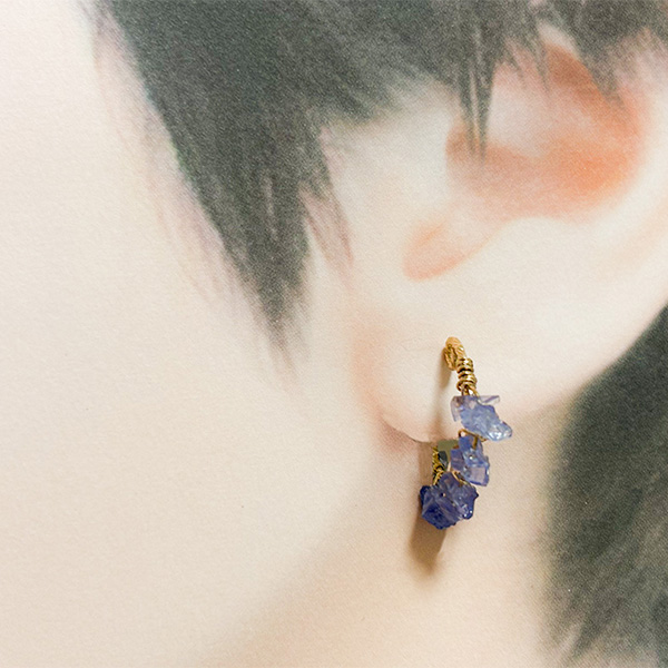 今回は、チップカットされたタンザナイトをまとめ、存在感のあるノンホールピアスに仕上げました。